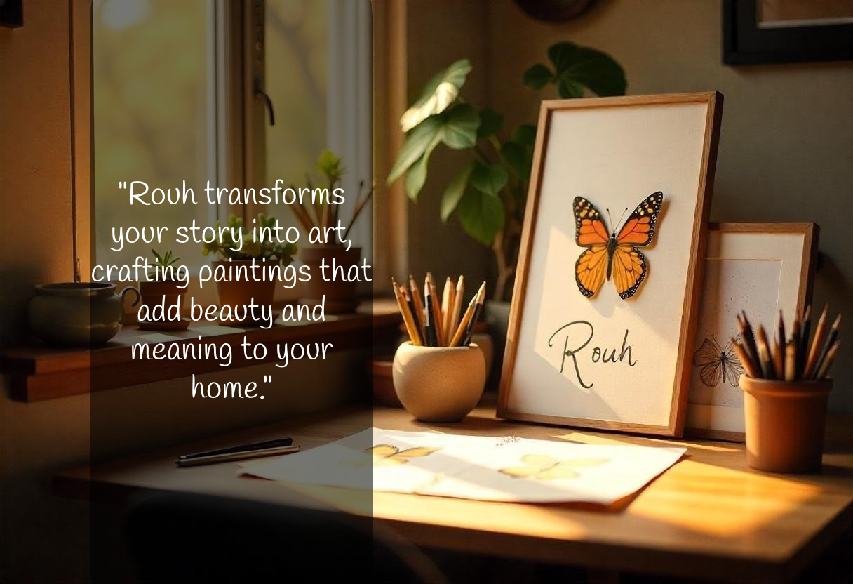 "DISCOVER THE ART OF PERSONALIZED PAINTINGS INSPIRED BY YOUR STORY. MASTERFULLY DESIGNED TO GLOW YOUR SPACE WITH MEANING, WARMTH, AND ELEGANCE"